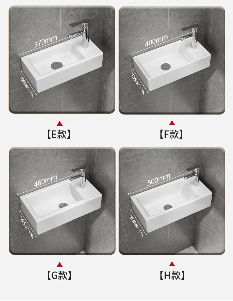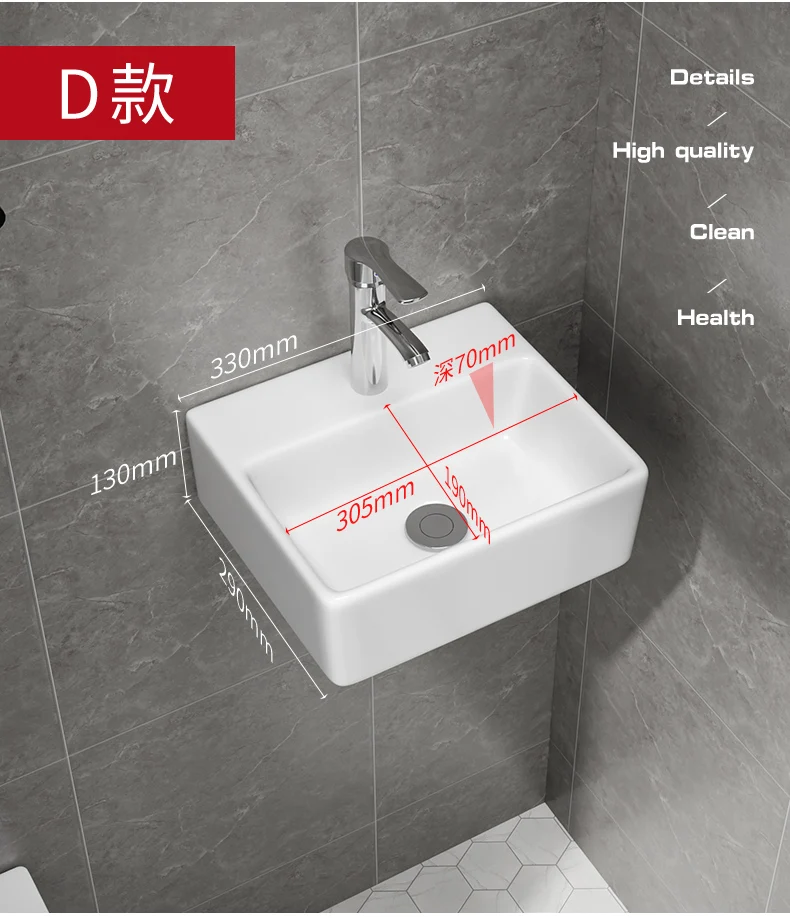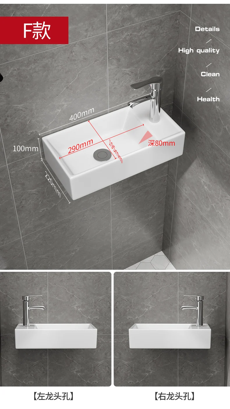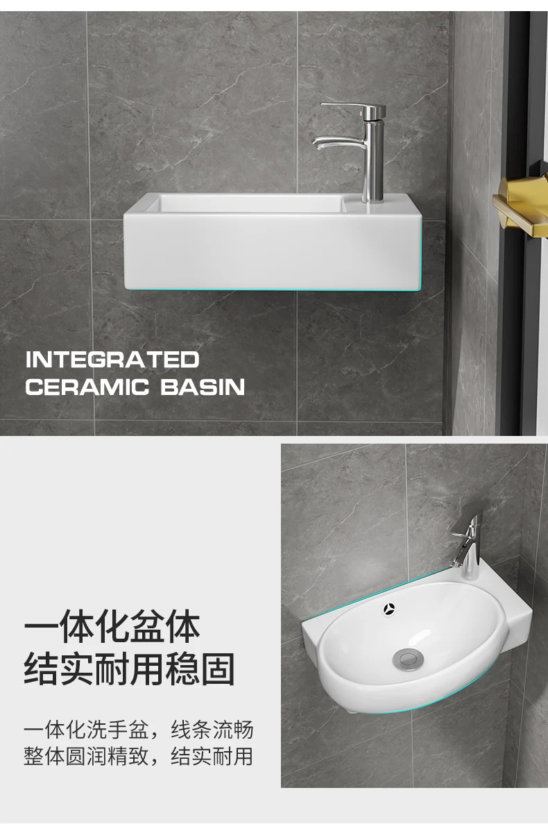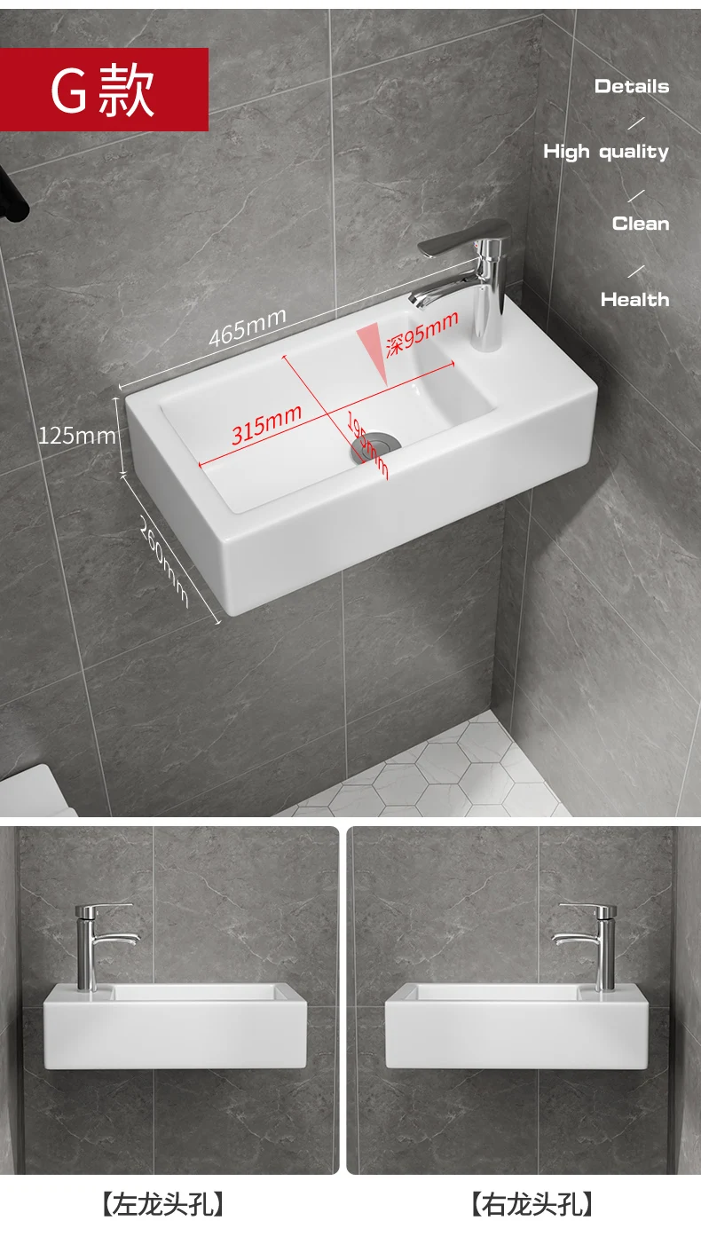 32/33/37cm Small Apartment Bathroom Sink Wall-mounted Ceramic Washbasin Balcony Washroom Corner Hanging Basin with Faucet Set
